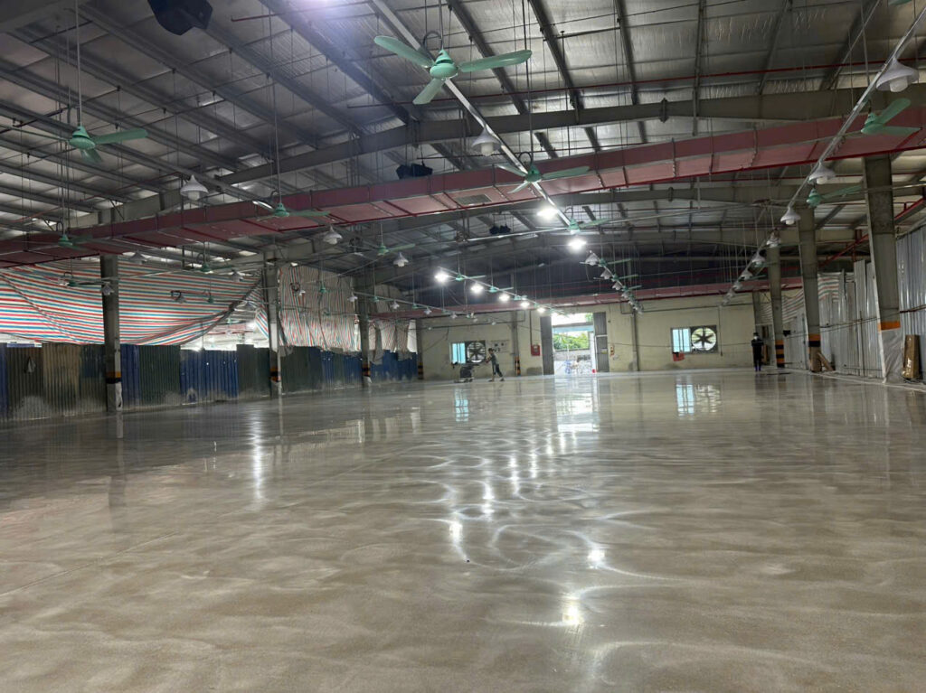 Thi công mài tăng cứng – đánh bóng sàn lộ cát tại Công ty TNHH Giầy Adiana Việt Nam, Thọ Xuân – Thanh Hóa